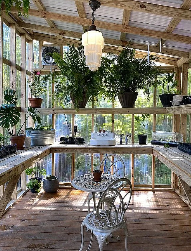 The property also features a two-car detached garage with potential for additional living space above, a three car carport, an extra-large dock with boat lift, raised garden beds, an irrigation system, and a custom greenhouse with water and electricity.