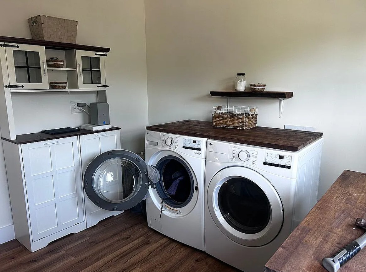 A 300 sq ft loft with pull-down stairs provides ample additional storage.