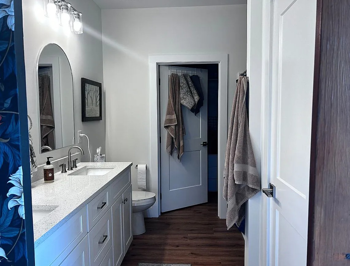 Inside, the open floor plan features high-end upgrades including quartz and granite countertops in the kitchen and bathrooms, a spacious dining area, and an oversized bar perfect for hosting family and friends.