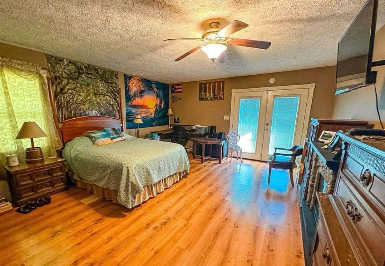 A private master suite addition provides a relaxing retreat, complete with French doors leading to a 6x10 back porch and a spacious 10x8 walk-in closet.