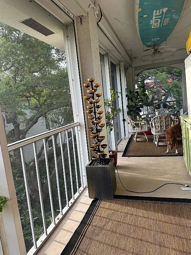 One of the standout features of this Hypoluxo waterfront condo is the private corner balcony and artist-painted ocean scene accents, creating a serene coastal retreat with natural light throughout.