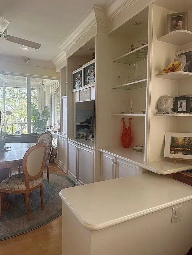 The home includes a flexible 2 bedroom plus den layout and has been fully updated with a European-inspired design, high ceilings, architectural archways, crown molding, hardwood floors throughout, and glass French doors that enhance natural light and indoor outdoor flow.