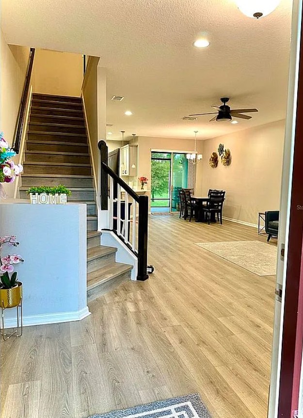 This move-in ready Wesley Chapel townhome features peaceful water views, upgraded finishes, and a functional open layout designed for comfortable everyday living.