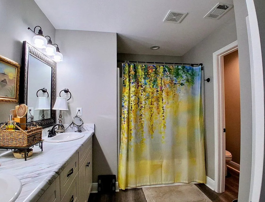 Inside, you’ll find a functional split floor plan with a modern kitchen featuring shaker-style cabinets and elegant oil-rubbed bronze fixtures.