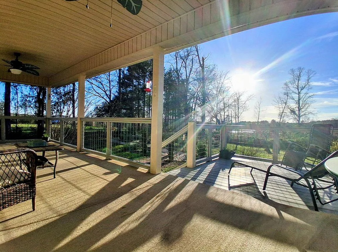 Step outside to a fully covered back porch with dual ceiling fans, connected to a 10' x 10' deck ideal for enjoying the tranquil setting year-round.